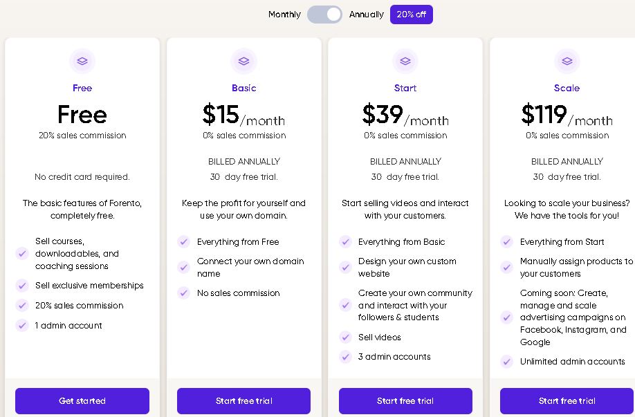 En cas de vente, il faut prévoir dans le plan FREE, le paiement de 20% de frais chez Forento contre zéro chez Système.ioI